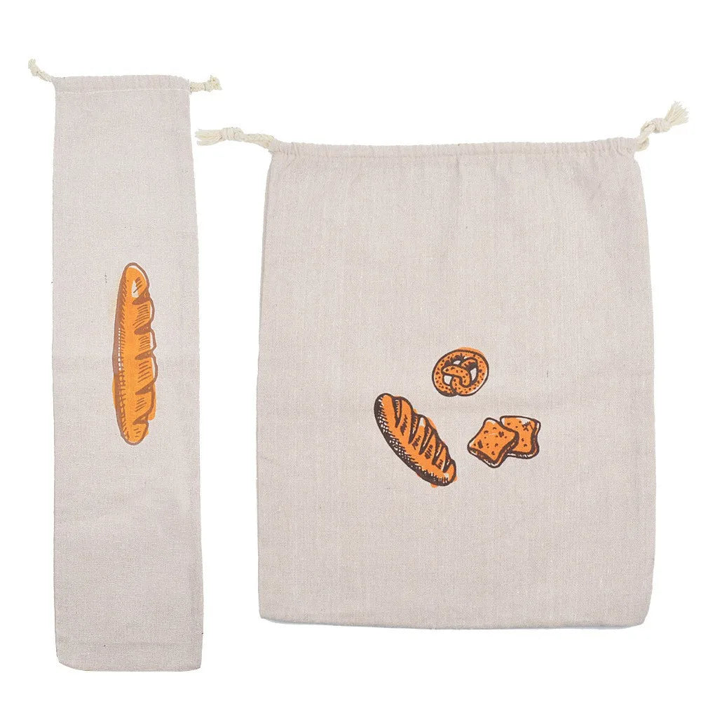 Sacs à pain en lin réutilisables, grand rangement lavable avec cordon de serrage